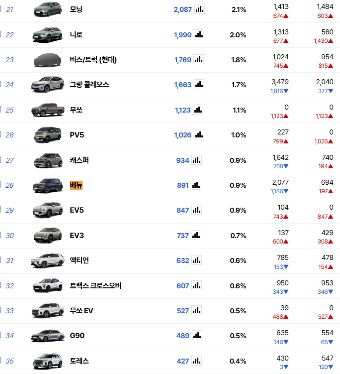 차량 판매량도 그렇게 많이 팔리는 차량은 아니다.