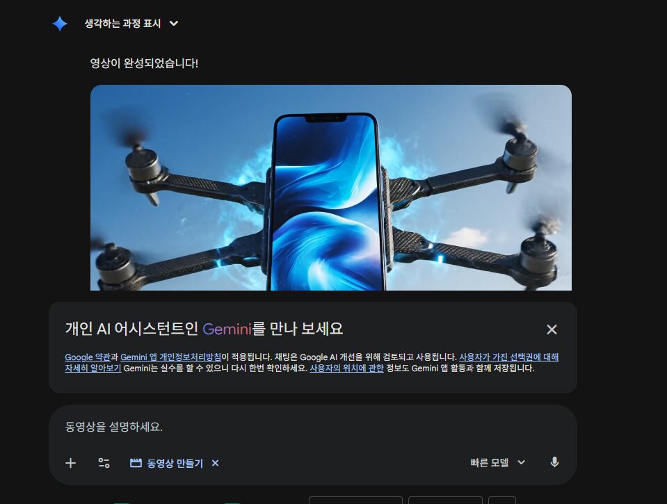 마찬가지로 도구를 누르면 동영상 만들기가 있고 그걸 누르면 새 채팅이 시작된다.
